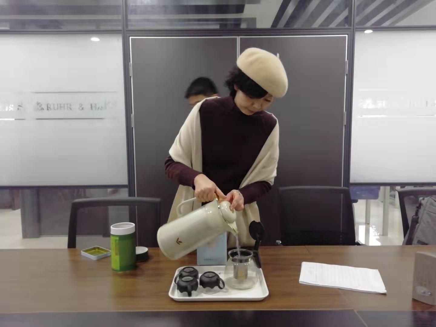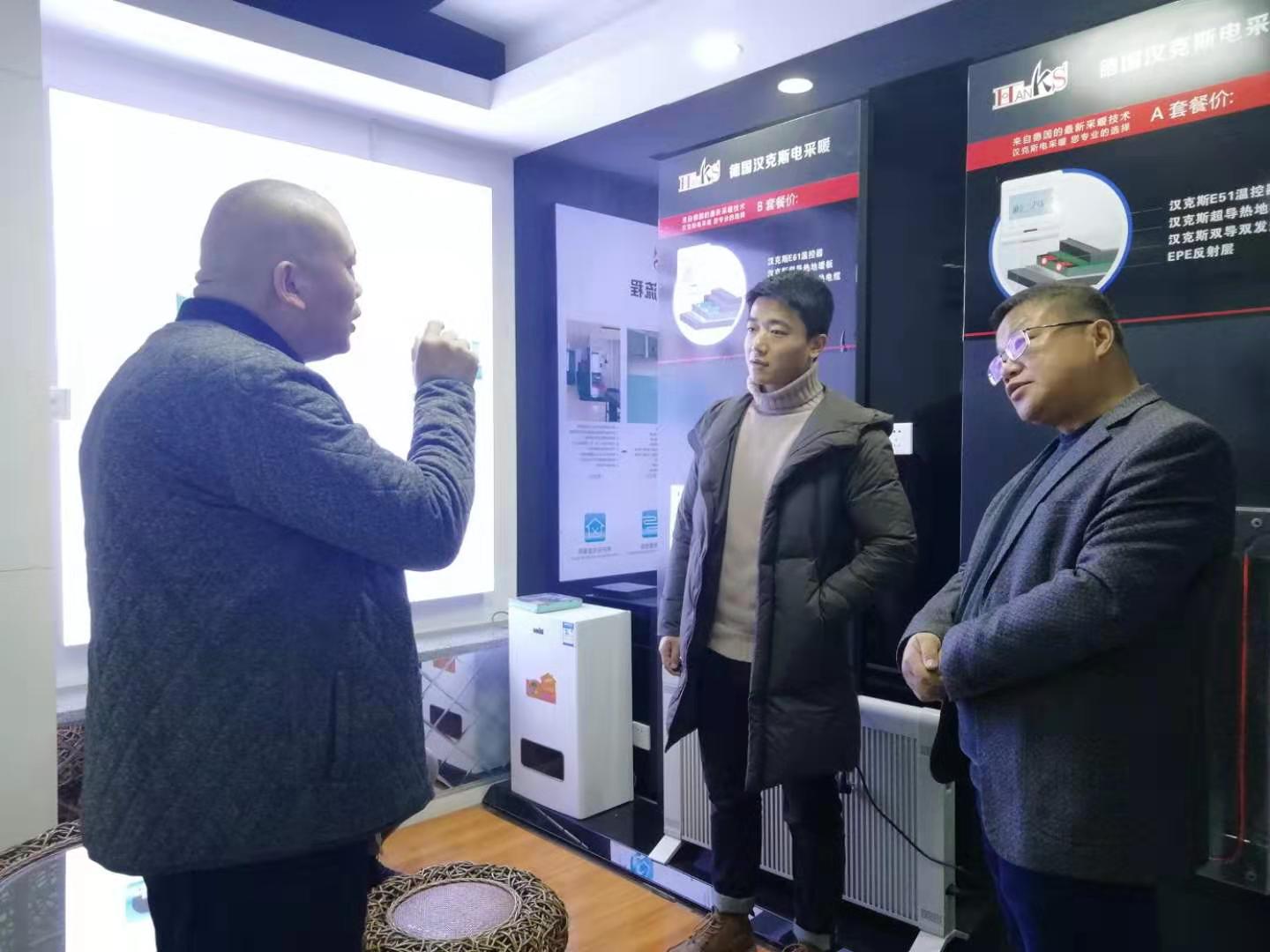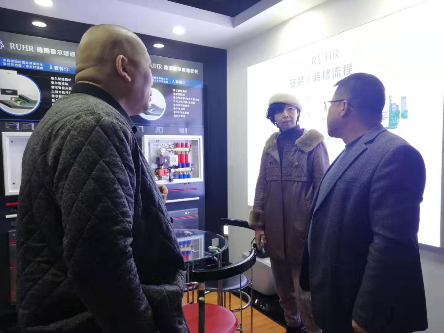 客户属于公司代理,来到公司就和在自己家里一样亲切,亲自倒水暖暖的,外面在下雪,到地冷地暖体验间太热,已经脱掉厚重的外套。