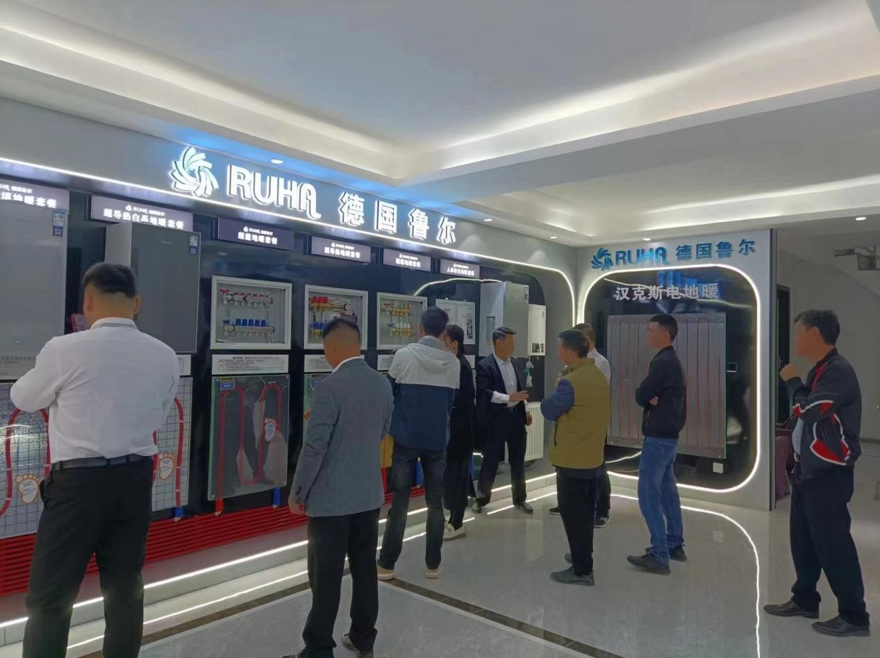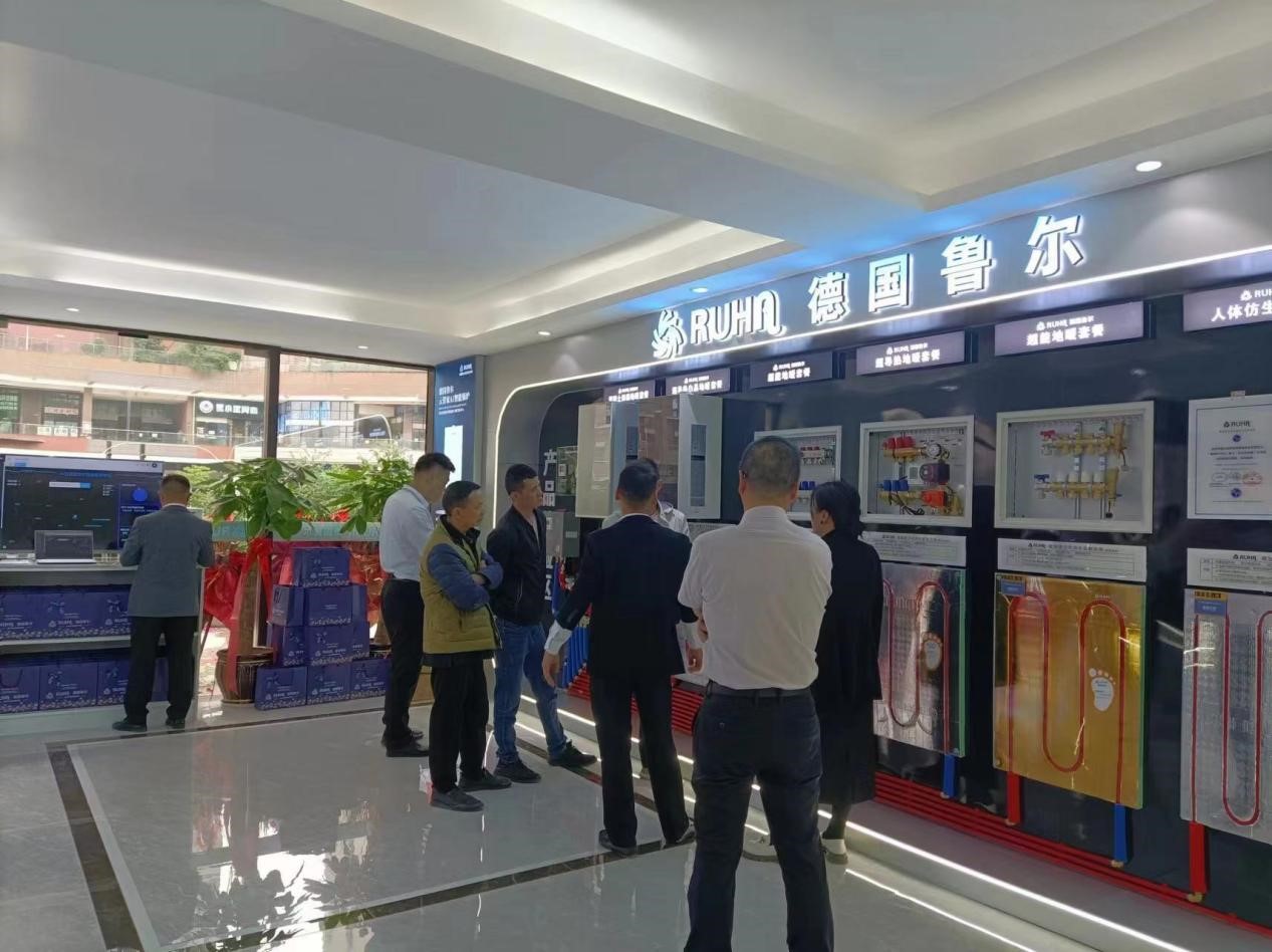 伴随着阵阵礼炮声,宾客入场,流线造型占据视觉,设计简洁大气而又时尚动感,展厅汇聚鲁尔超导热地暖、鲁尔云管家AI智能壁挂锅炉、鲁尔水生态中央空调等全屋冷暖生态链的全系列产品,为客户提供全面而舒适的产品体验空间,共同见证鲁尔新征程的蓬勃开启。